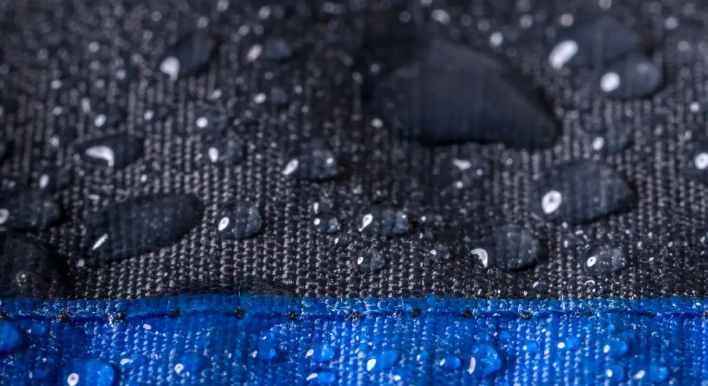 - لایه بیرونی (Face Fabric): معمولاً از نایلون یا پلیاستر با بافتهای مقاوم (مانند Ripstop) ساخته میشود. این لایه خود ضدآب نیست، بلکه وظیفه محافظت مکانیکی از غشاء ظریف زیرین را دارد. این لایه با یک پلیمر شیمیایی به نام DWR (Durable Water Repellent) اشباع میشود.